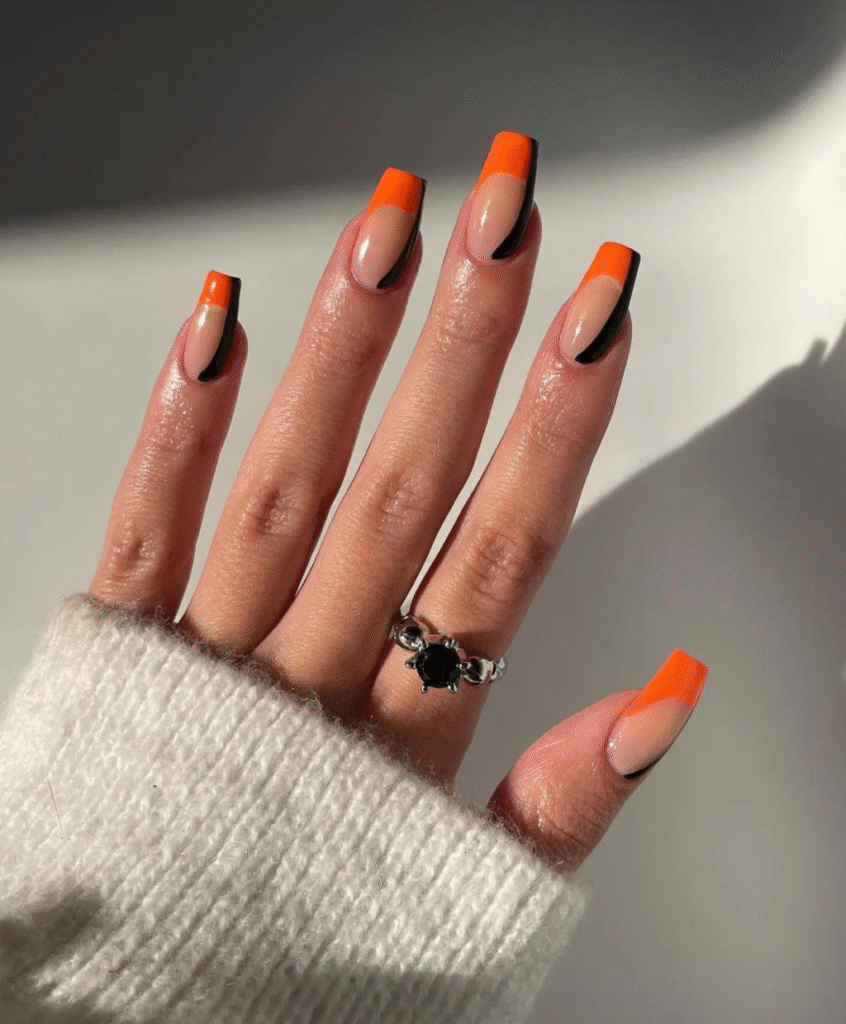 1. Classic Black & Orange Nails