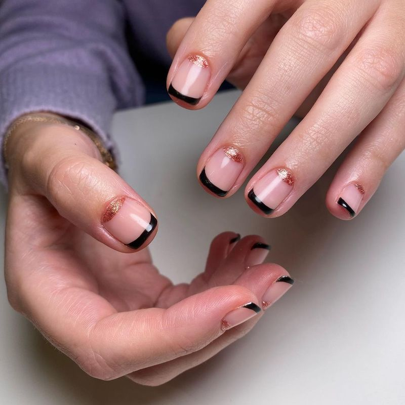 Instead of classic white French tips, try thin black lines at the tips of your nude nails. It’s a small change that makes a big difference. You can also curve the line or make it double for a fun twist. This style is simple enough for work but still stands out with a touch of elegance.