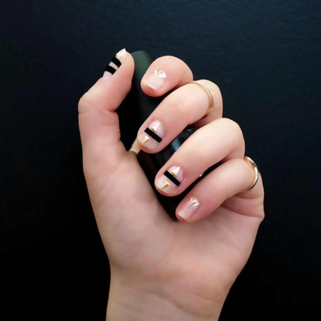Negative space nails use parts of your natural nail as part of the design. Paint only half of the nail with nude polish and draw a few thin black lines across the blank area. This style looks airy, modern, and super trendy—perfect for anyone who loves something a little different.
